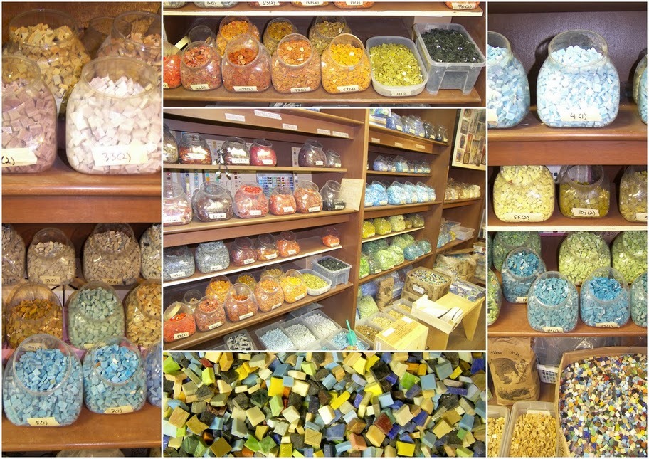 C’est la fiesta chez Mosaikashop! Les smaltis sont arrivées, olé! Beaucoup, beaucoup de couleurs, tout pour vous donner envie de vous relaxer à faire la mosaïque cet été. (It’s fiesta time at Mosaikashop! The smalti and lots of it has finally arrived, olé! Just in time for summer relaxing, doing mosaics)