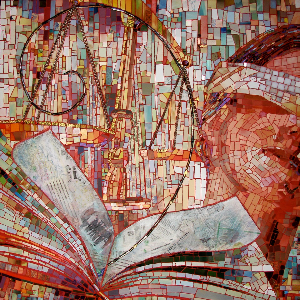 (Madeleine directed this collective mosaic work entitled Justicia. It is with great joy that she has loaned it to L’Espace S before its official presentation. Come quick, this piece is on show til September 7 Here are the details about it):