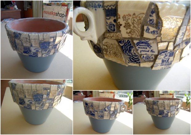 (Zénaide, following the first class was delighted to have a crack at Picassiette mosaics. Her blupot is magnificiant, here is a photo of it on all its angles. Villeroy & Boch does give a particular wow effect to Picassiette)