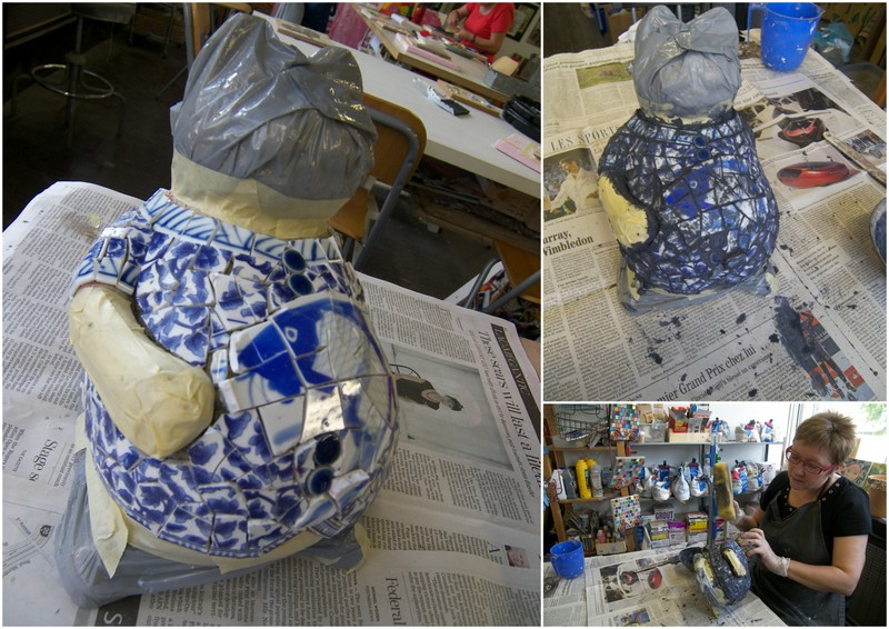 Nicole and Danielle worked very hard together on this Picassiette pot to offer as a gift to a colleague. What a nice idea! Scanning ones eyes around the pot is a real pleasure!