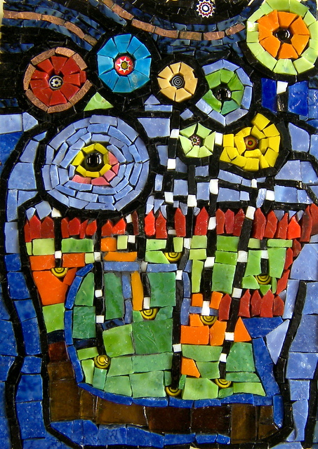 L’atelier portera sur la technique de coupe des smalti, (ces merveilles de la tradition byzantine venant du Mexique) et sur la bonne utilisation de la pince à molettes, cet outil pas toujours facile à maîtriser! Le projet mesure 5 x 7 po, l’image sera imposée, mais vous aurez un choix. Le sujet sera d’après une œuvre de Hundertwasser, la coqueluche de Mosaikashop!