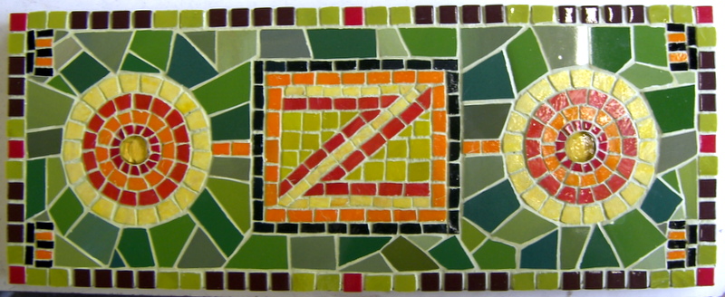Suzanne marvels us with her quickness in producing these picassiette mosaics to perfection…it is funny I never see her work really, she seems to be always at the grouting stage. She picassiettes faster than my shadow!