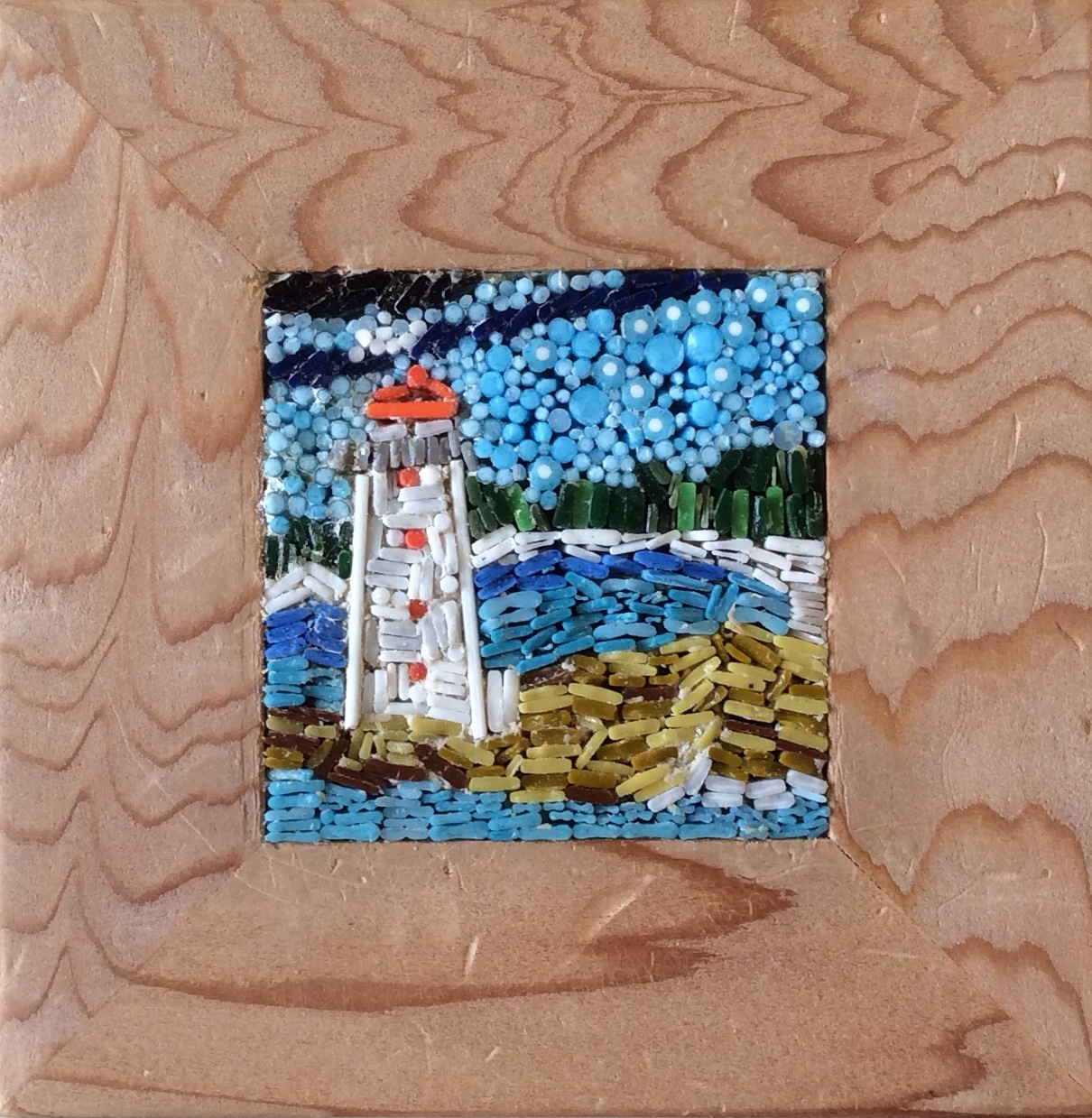 Marie-France continued with the theme of Hundertwasser with this other miniature according to his painting. A work of patience and pure relaxation for her.This mosaic measures 5inX7in!