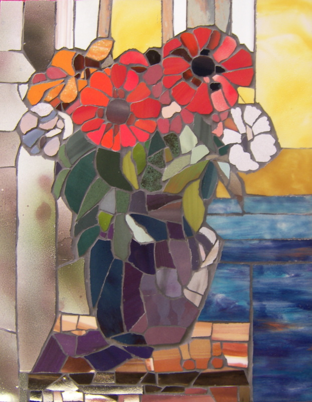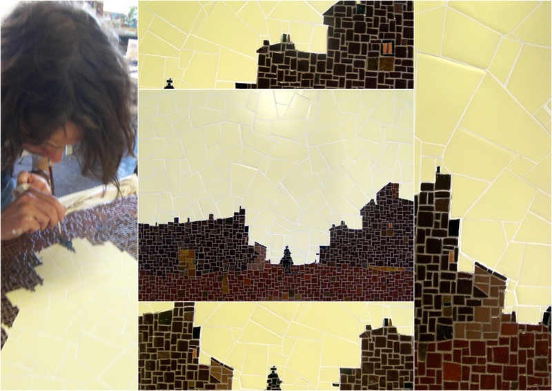 Ginette was marked by emotion when she came to Mosaikashop. The mosaic experience visably marked her, but now she is traveling in India, I think that experience will mark her even more! In this mosaic she used some of Martin Cheek’s fusion.