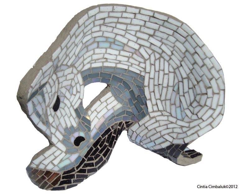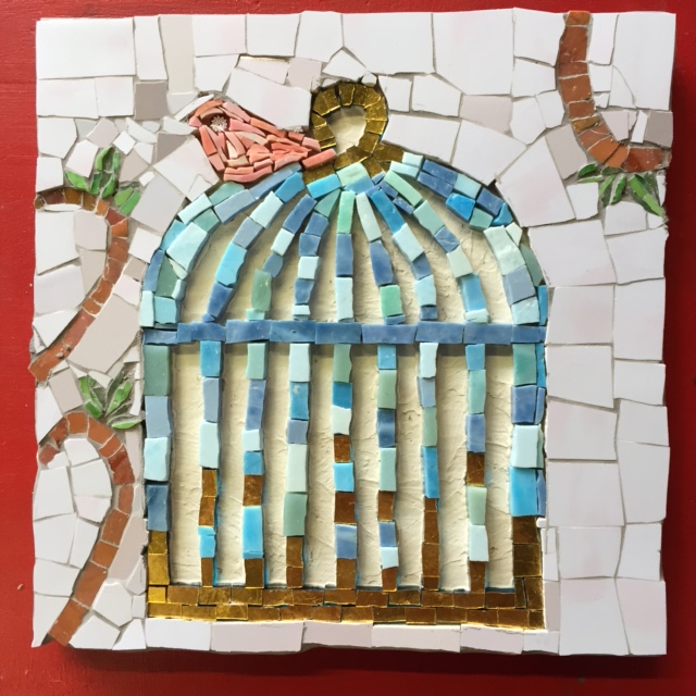 I always like a challenge, for this installation we have special no mosaics in the cage! The result is fabulous and a great idea. I know the person who made this mosaic but I forgot her name, sigh.