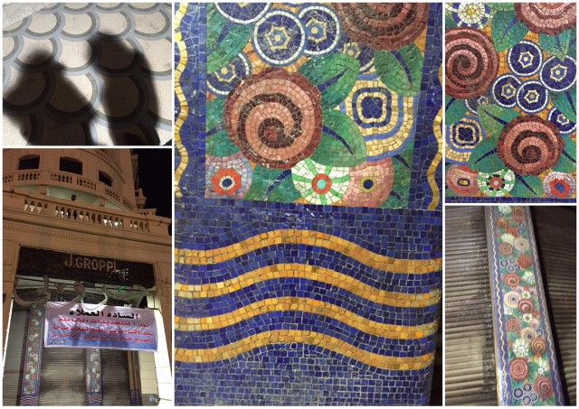The beautiful mosaics are still standing but in a bad state, sadly. Groppi was once the hottest spot in Cario to see and be seen. Now it is in a very sad state. If you are curious for more info, here is an article about this unique landmark. http://www.newsweek.com/enduring-charm-cafe-groppi-cairo-64421