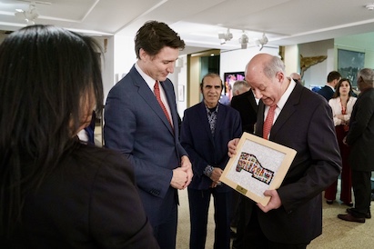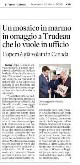 I was quite honoured to be commissioned to do a mosaic which was gifted to the now former Prime Minister of Canada Justin Trudeau. The mosaic represents his the region of Papineau where he started his political career. Here he is receiving the mosaic.