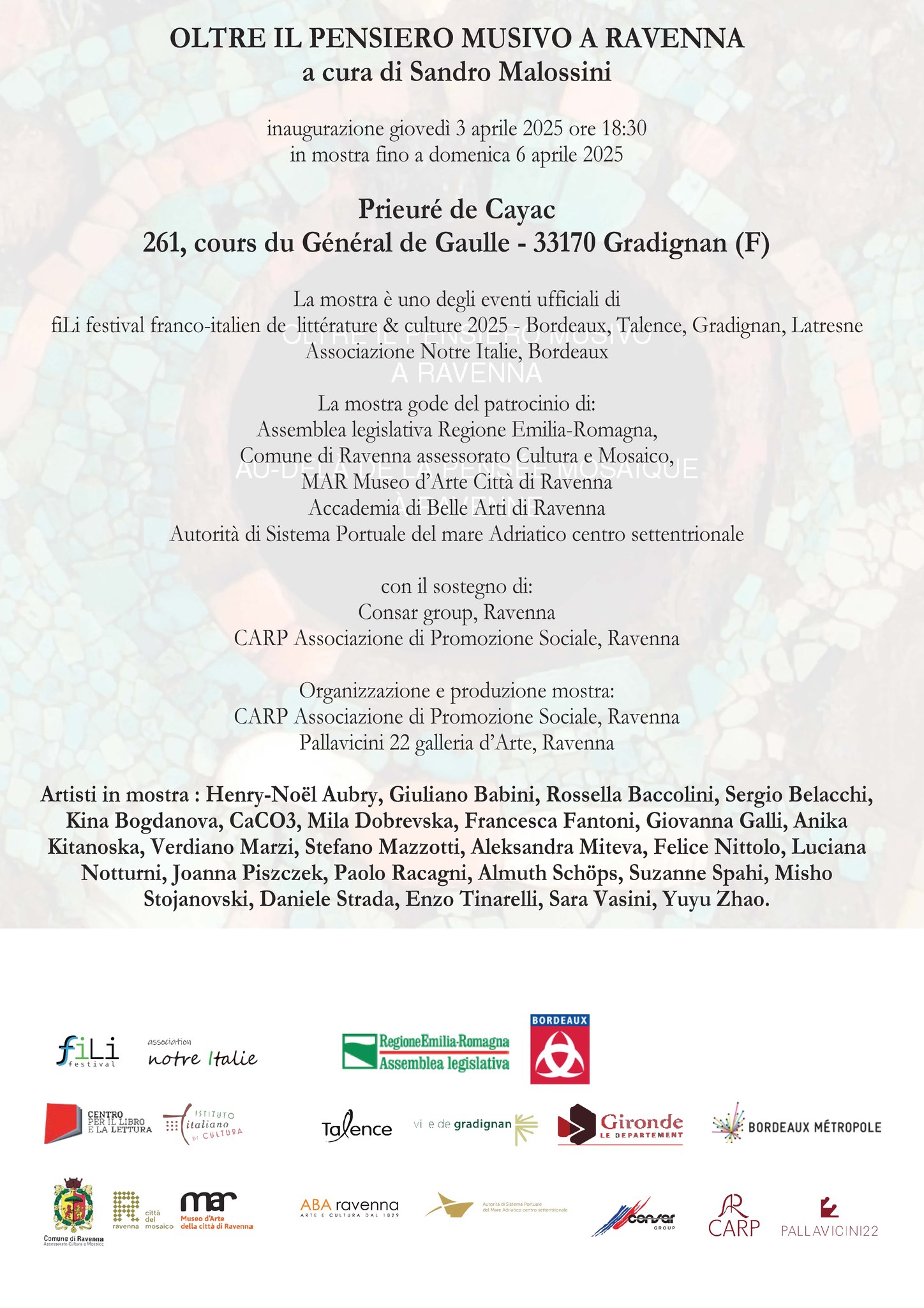 My two mosaics participation in an upcoming collective exhibition in Prieuré de Cayac, Gradignan, France