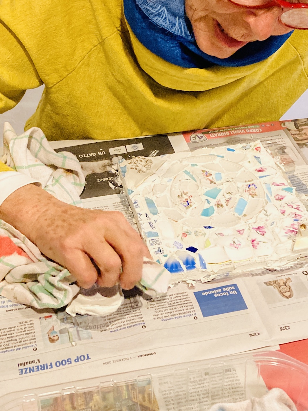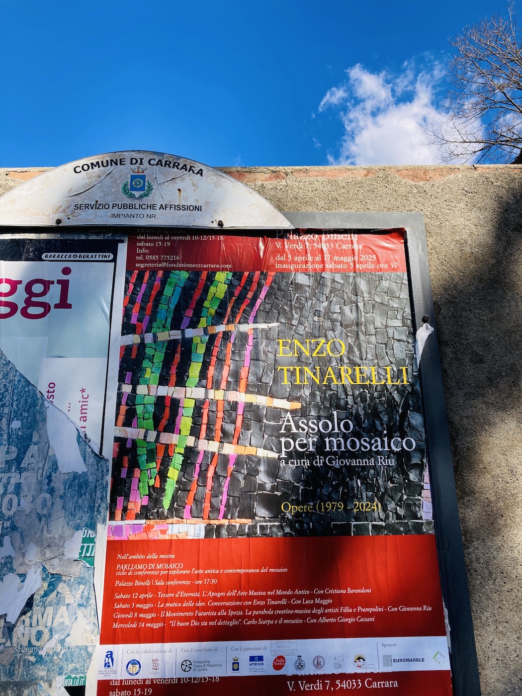 On occasion I launch short workshops in Carrara. I am currently doing them in Enzo’s gallery here in the heart of historical center of Carrara until I get a proper space to be able to welcome more people and organise small mosaic exhibitions.
