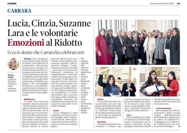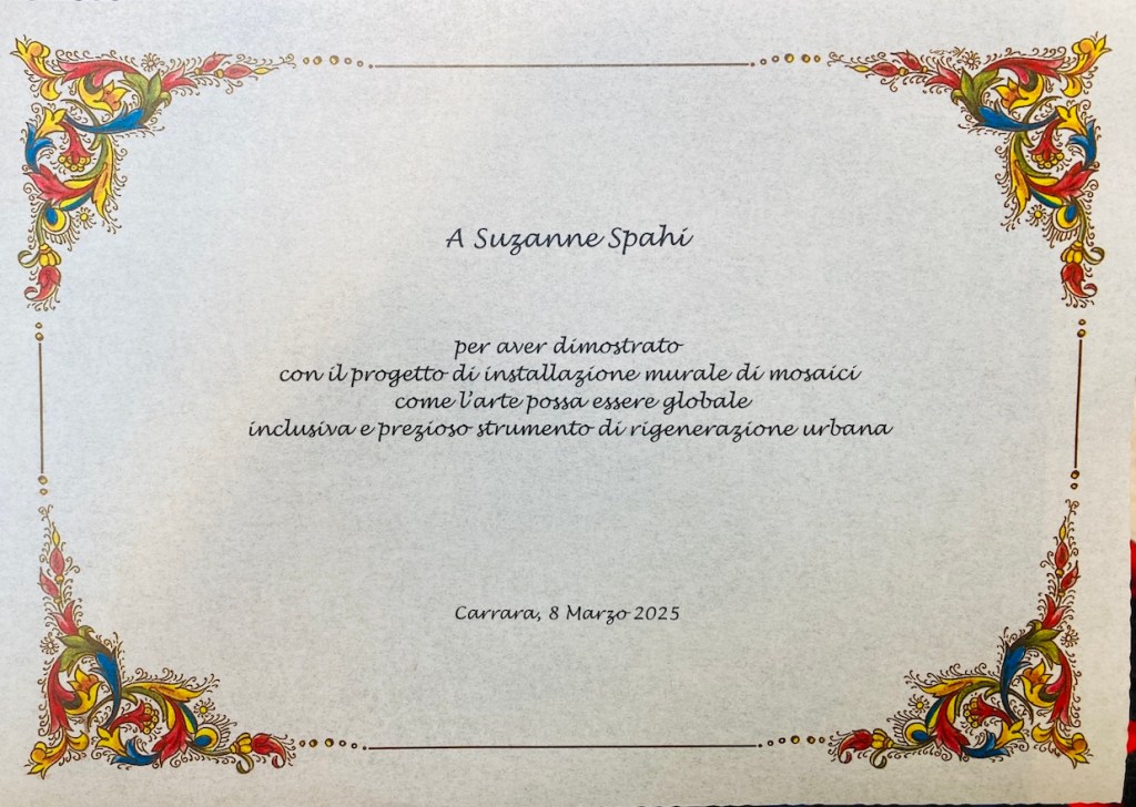 On March 8, 2025 it was with great honour that I received a special prize on International Women’s day for the Roses for Carrara Project.