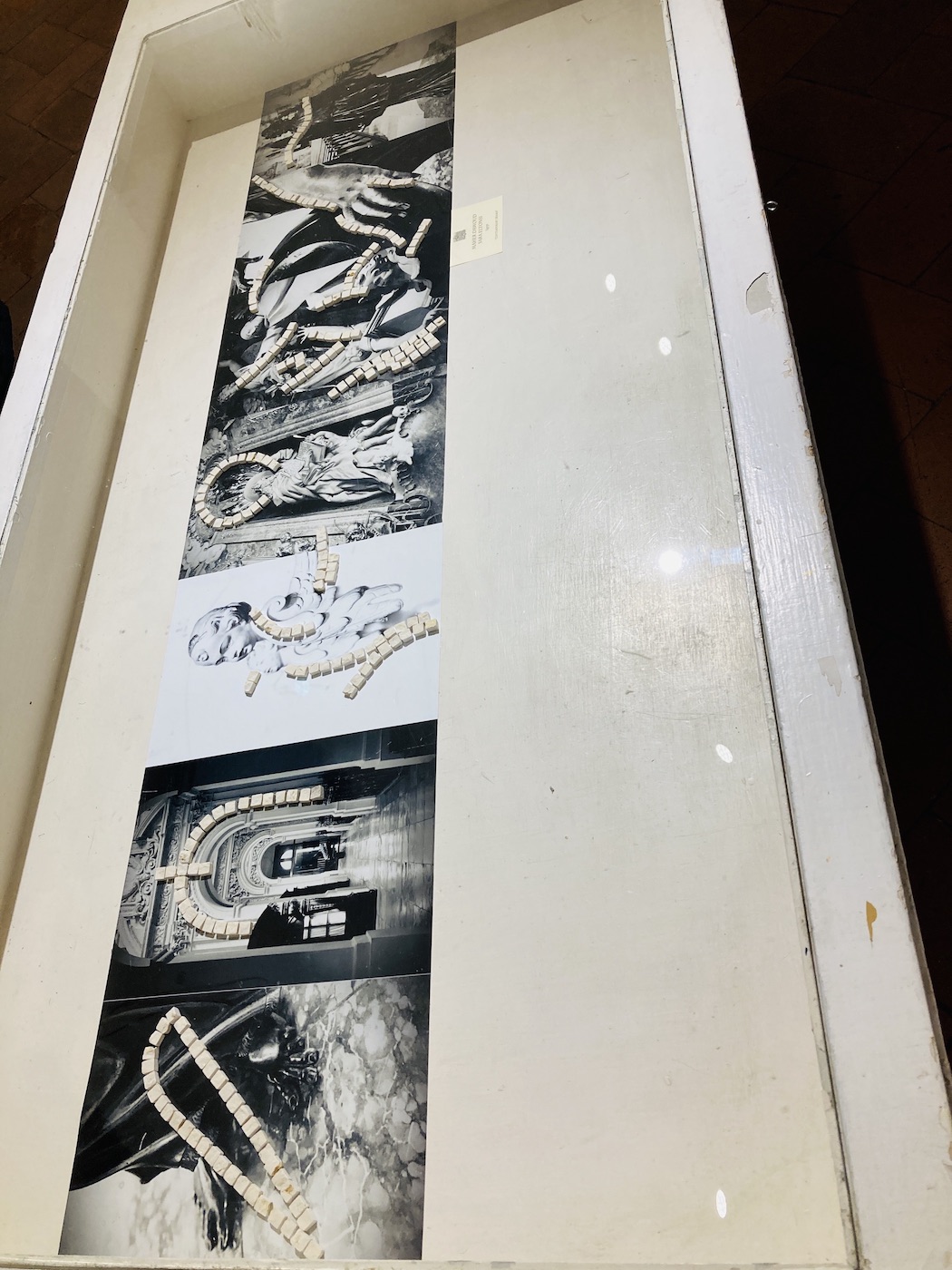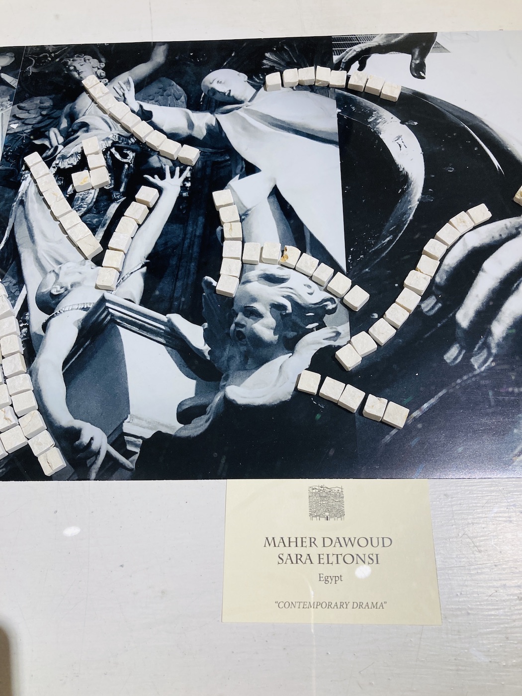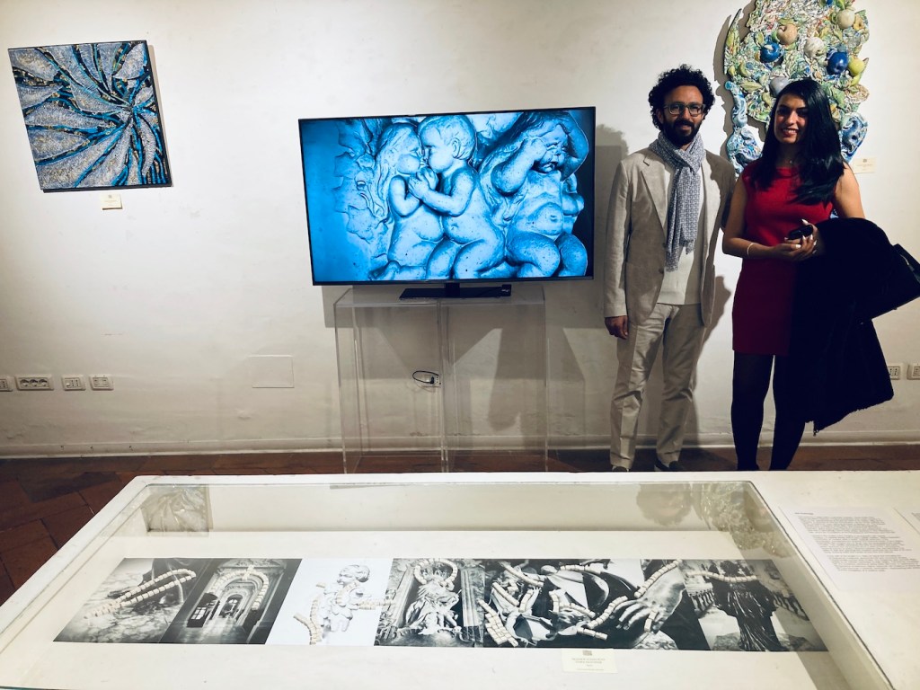 Based in Egypt and Germany, Maher and Sara’s work was an installation where they blend photography with mosaics. Their research-based concept explores the idea of art returning to its origin. The photographic series—Italian sculptural forms captured on German lands—finds its way back to Italy, where its story began. The mosaics are made of marble, a material deeply rooted in Italian artistic tradition, yet intentionally not affixed to the photographs—symbolizing movement, transformation, and the spiritual return of form to its birthplace. Through this interplay, they reflect on the timeless dialogue between mediums and cultures.
