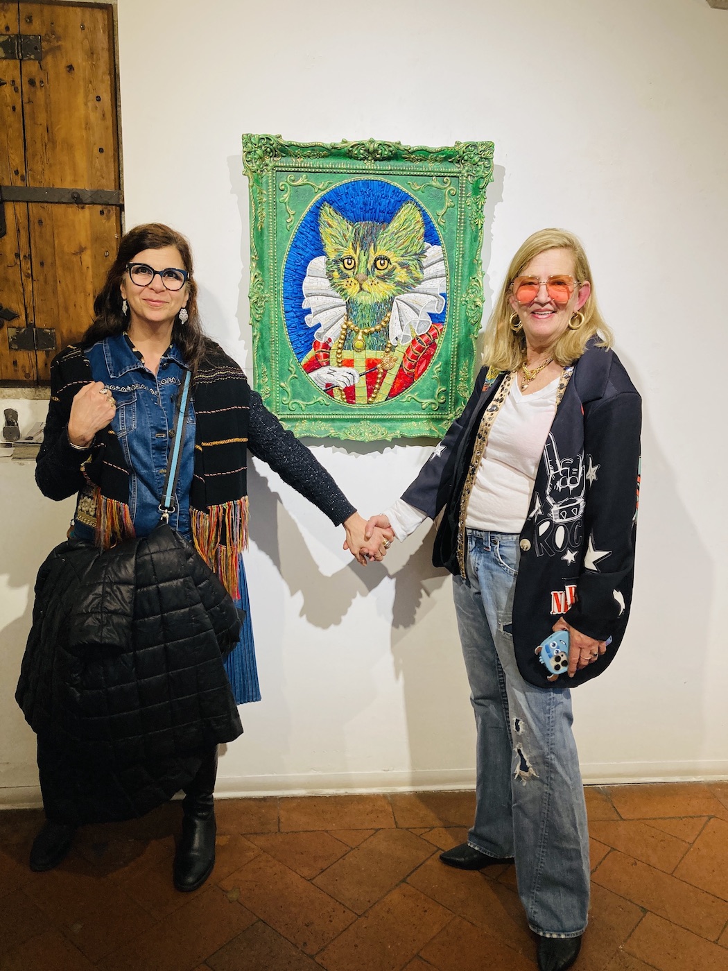 I was also delighted to hear shout out my name ‘Suzanne!’ As also present and part of the exhibition were some of our contributors to the wall of roses! I was so happy to meet them for the first time. Attending the exhibition who’s roses marked me was Caroline Jung, Maria de Cataldo and here I am with Nira Ben David Peled beside her unique style mosaic.